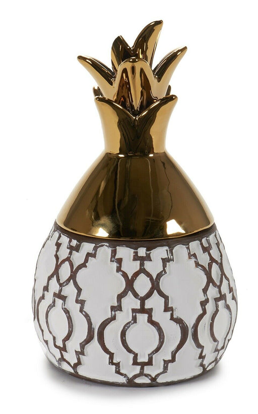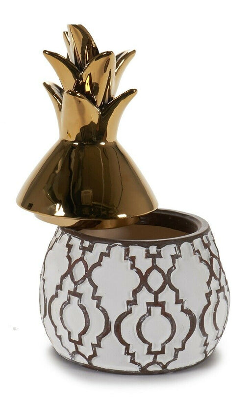 Gold & White Ceramic Matt Ethnic Pineapple Shape Jewellery Box Storage Box Gift