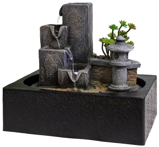 • Indoor Water Fountain with Pump LED Light Up Waterfall Sculpture Resin Ornament
