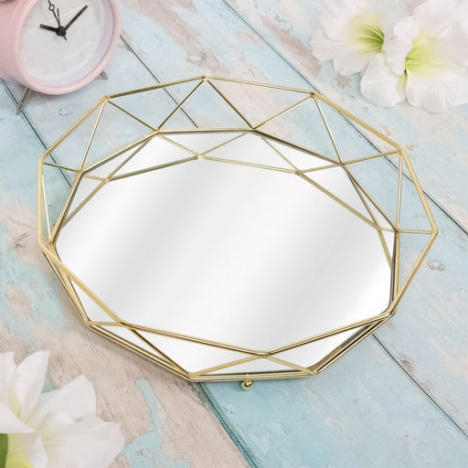 27cm Mirrored Tray - Gold With a unique hexagon shape, this Glass Mirrored Display Tray would make the perfect decorative accessory for any home dé...