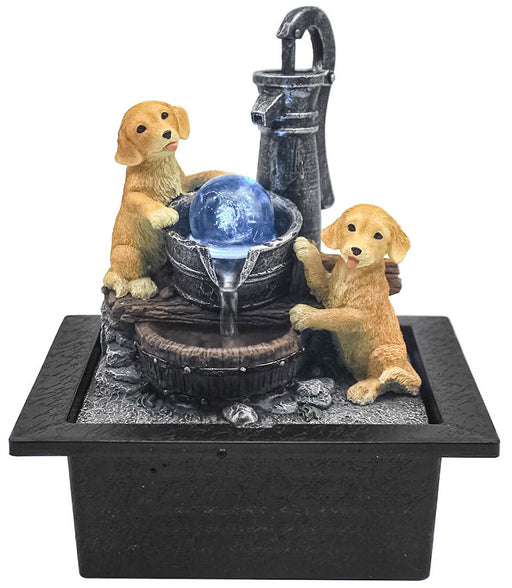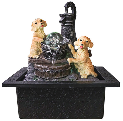 • Indoor Water Fountain LED Light Up Waterfall Puppies Water Feature Sculpture