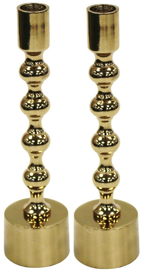 2-Pack 23cm Tall Aluminium Candle Holder, Gold - Ribbed Base Candlestick Set