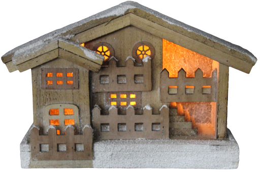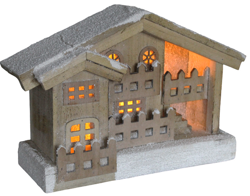 Rammento Wooden LED Christmas Village House, 35x22x11cm White Light-Up Ornament