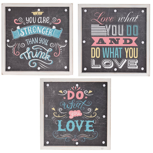 Set Of 3 Motivation Wall Quotes With LED Lights Wooden Frame Home Bedroom Décor