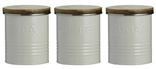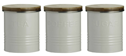 • Typhoon Rippled Metal Tea Coffee Sugar Canister Set Cream Airtight Bamboo Lid