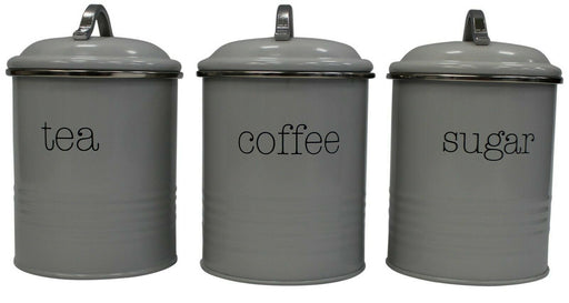 • Vintage Retro Tea Coffee Sugar Canister Countertop Storage Set Pastel Grey