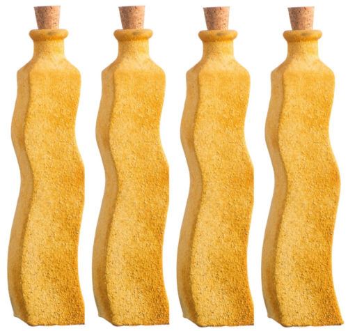 4-Pack 220ml Yellow Wavy Sand Effect Glass Bottles with Cork - 23cm Home Decor
