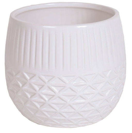 Round White Plant Pot Smart Ceramic Striped Planter 13.5cm Planter